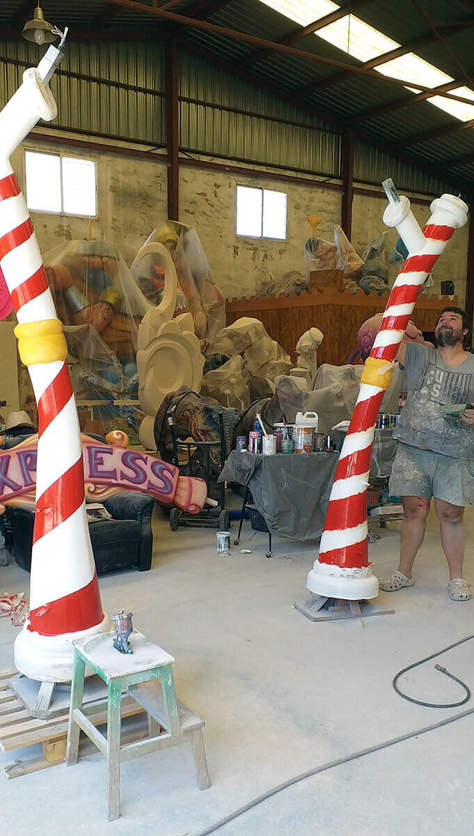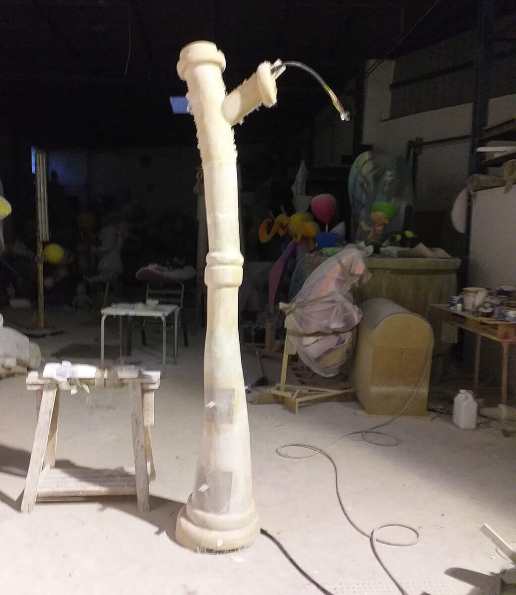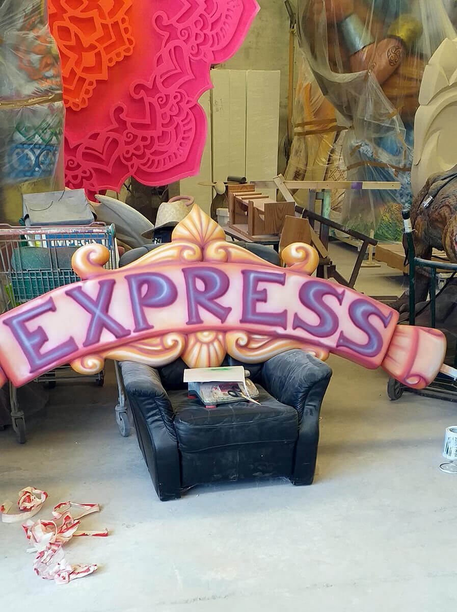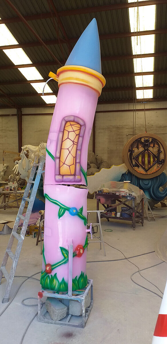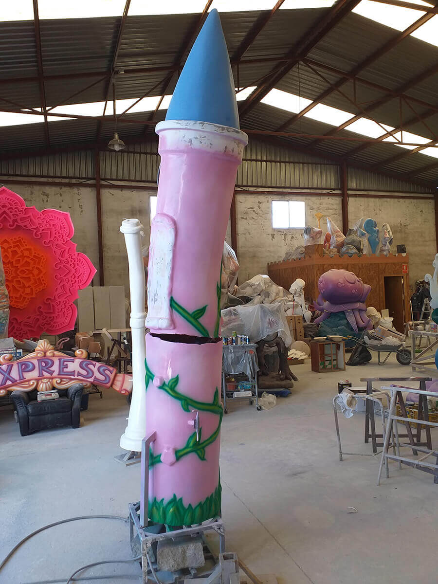 Los feriantes de Alicante solicitaron una carroza ambientada en un mundo mágico, que realizamos en fibra de vidrio y poliéster, utilizamos los materiales más adecuados para cada trabajo.