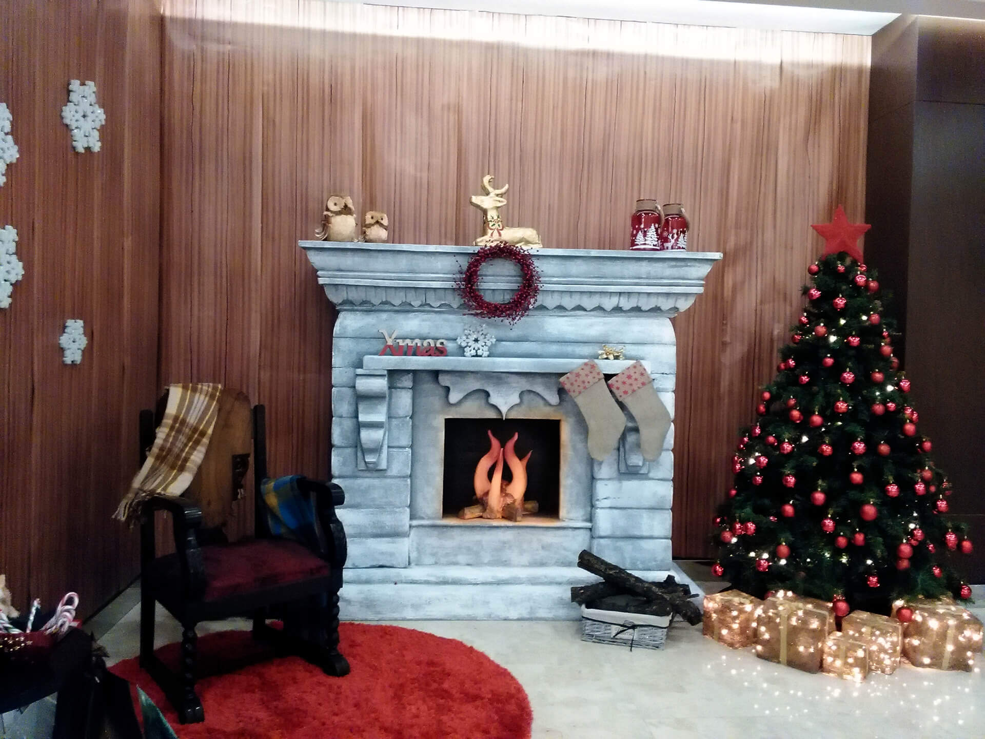 El Hotel Meliá quería darle un toque navideño al hall de su hotel en Alicante y elaboramos una estampa clásica con chimenea para ambientar el establecimiento.